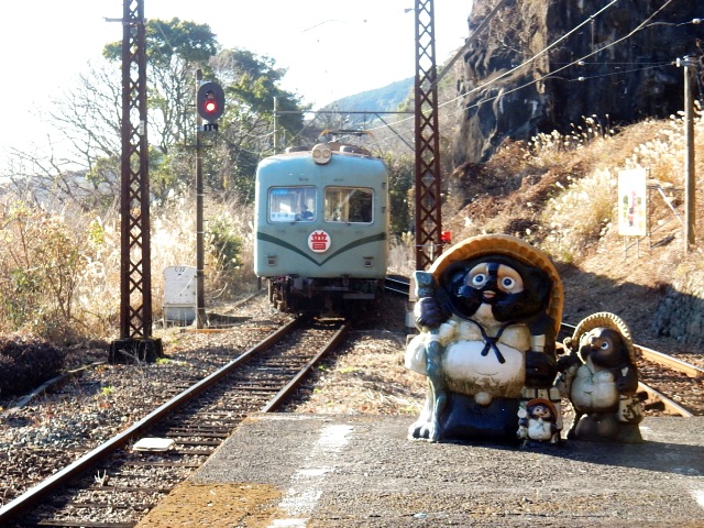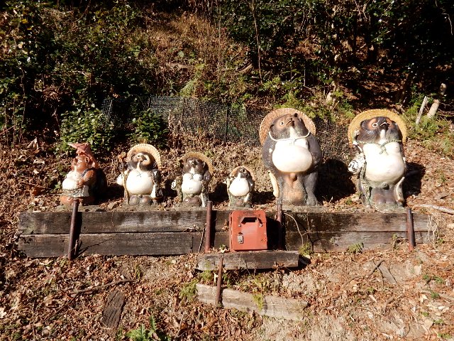 同駅に何故か昔から大量に居るタヌキの置き物さんたちも、日光浴