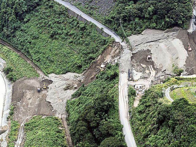 ワケですが、更に上にあった採石場の跡地が崩れ、国道の路盤