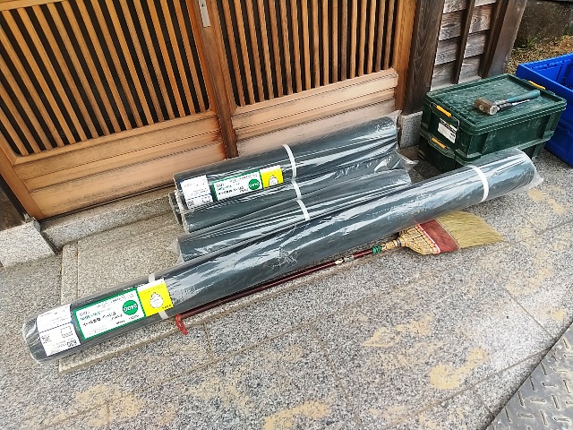 砂利の位置には上記のシートを敷いて行くので、今後は草むしり