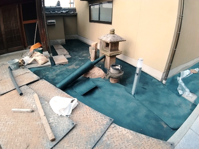 土が敷かれてる部分にはシート状になった芝生が埋められてる