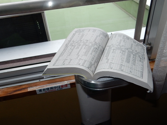 してみましょう。窓枠の所にある車両用テーブルに、時刻表やカメラ