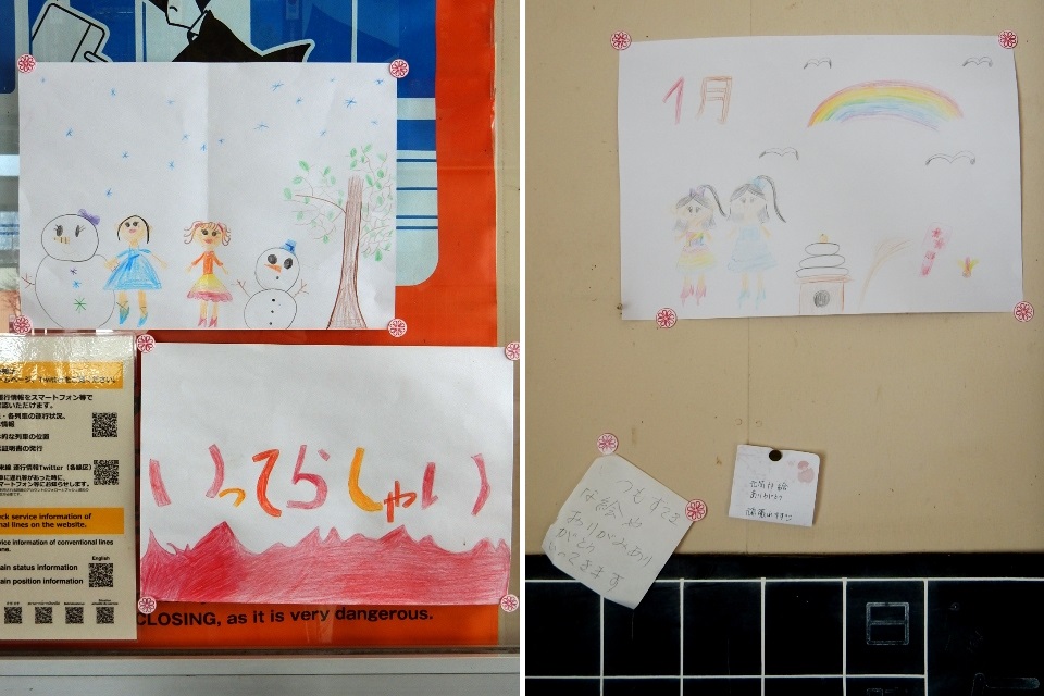 駅舎内には近くの小学校(恐らくは支援学級)の子供たちが描いた