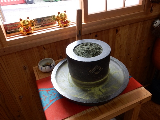 ココのお茶は御当地の「祖谷茶」なのですが、緑茶の茶葉を石臼で