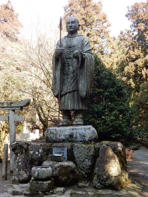 境内に入った所に、大きな弘法大師の像が立ってます。…四国の