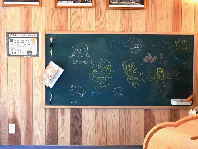 駅舎内には、駅ノートの他にも落書き可能な黒板があり、地元の