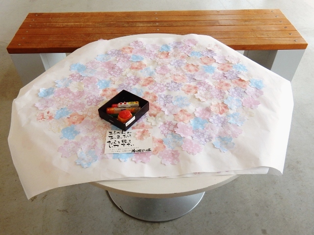 が用意したと言う、桜の花を貼る模造紙が置かれています。