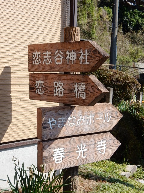 案内用の道標に同じ方向で「恋志谷神社」と言う神社が記されて