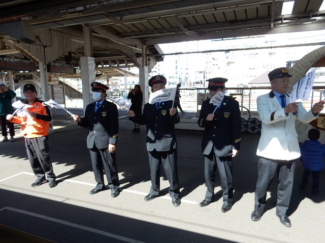 手が空いてるであろう駅員さんが見送るスタイルも、観光列車の定番
