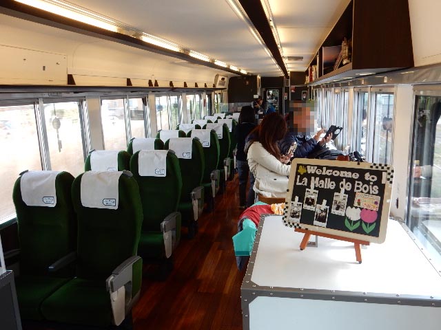 本が置かれてると思われます(よく見てナイ)が、他の観光列車と同様