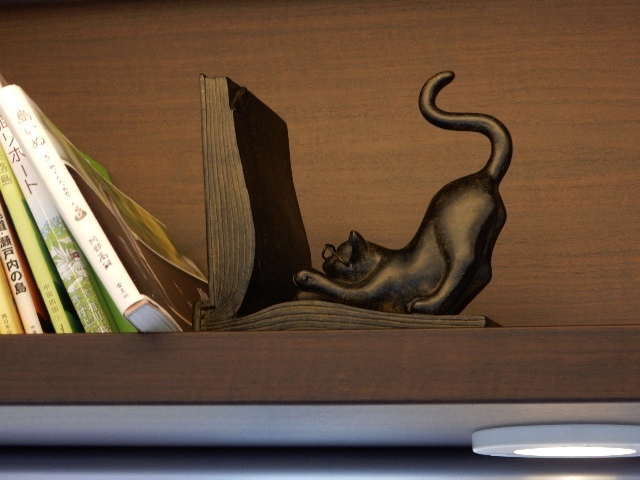 で目新しいのと、猫のブックエンドが可愛くて素敵ですね。