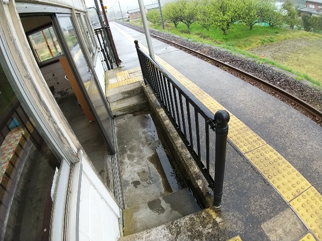 ホームが嵩上げされており、待合室は少し低い位置にあります。