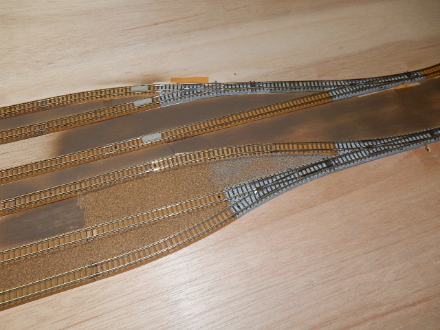 分岐器は道床の色が違うので、この周辺は灰色のバラストを混ぜて