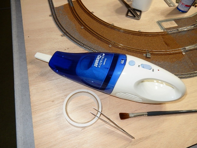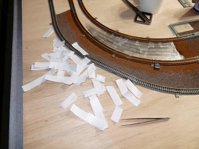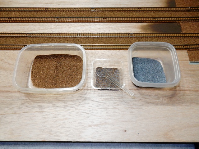 内陸線のバラスト撒きをやってますが、バラストは一応、茶色と