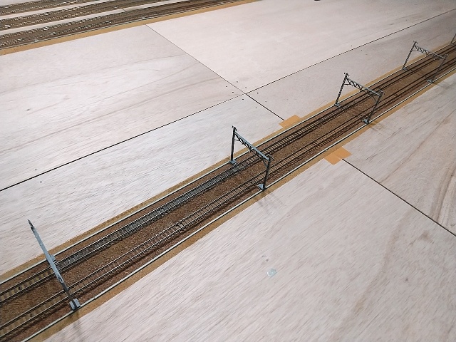 大きな貸しレイアウトでは架線柱を省略した物も多いですが、私は
