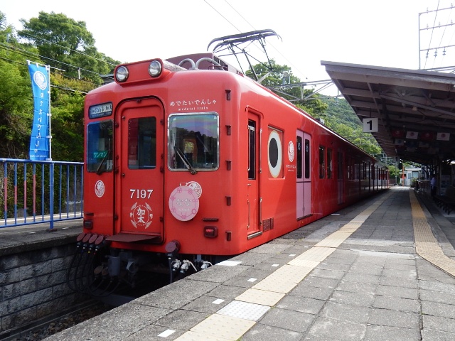 入線してるのは「めでたいでんしゃ」のうち子供キャラの「なな」で、