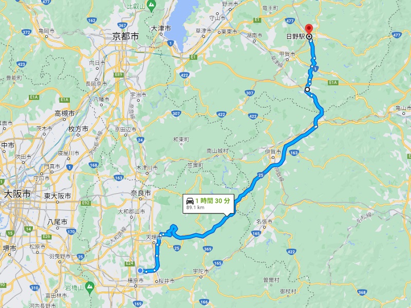 まず現地へ行くのに改めて経路を検索すると、天理から名阪国道
