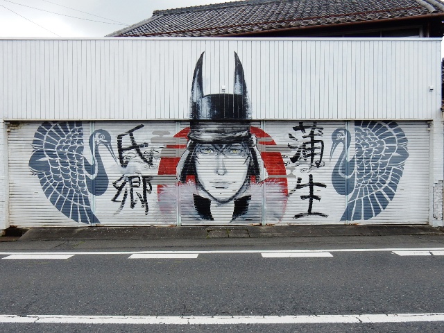 左は御当地出身の武将、蒲生氏郷をイメージした物でしょう。