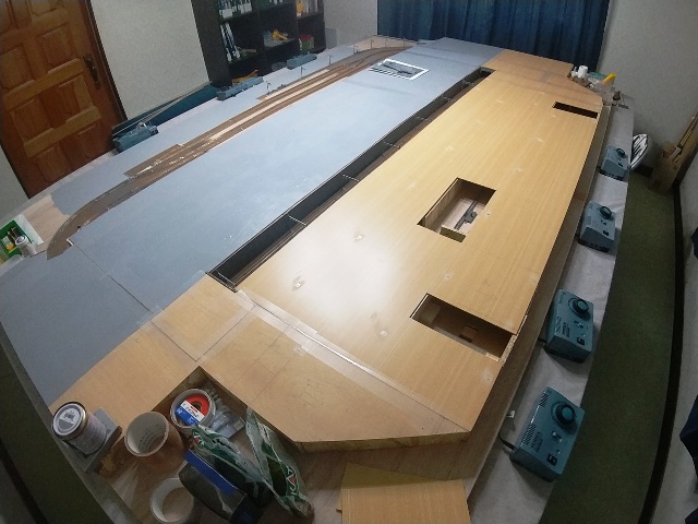 ボードの下に出します。…同様に高架線を敷設し終えたら、ココは