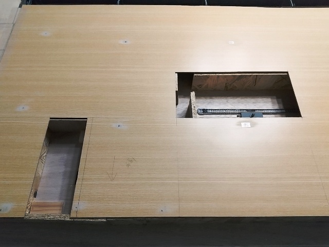 地面に相当する部分には、現段階で3箇所の穴が開いています。