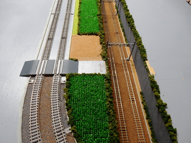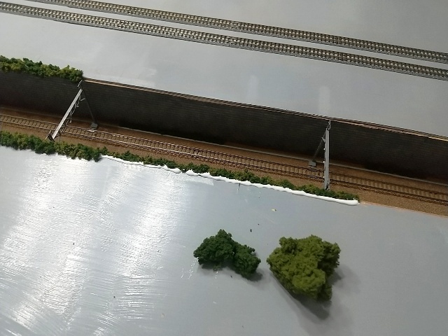 内陸線の堀割の継ぎ目の部分に草を生やして、隙間を隠します。
