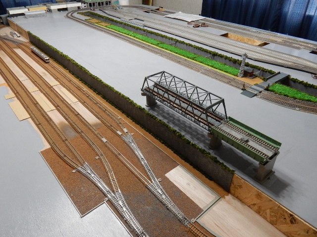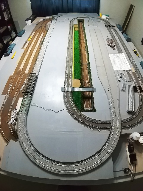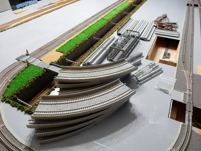 先述のように高架線の線路を敷設してしまうとジオラマの中央部の