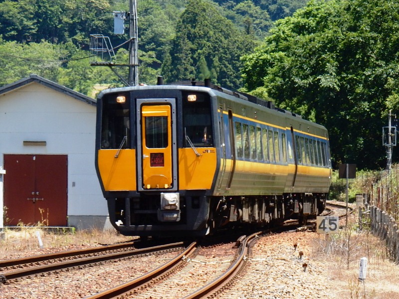 岡山方面から来るJRのキハ187系の特急「スーパーいなば」と
