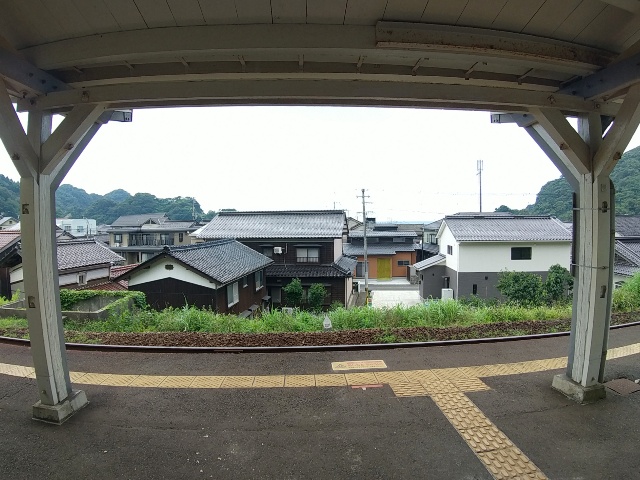 海岸・集落・線路と並んだ高台にある駅で、元は仮乗降場だった