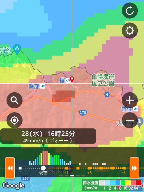 もう少しキツく、長時間に渡る降り方だと一時的に運転見合わせに