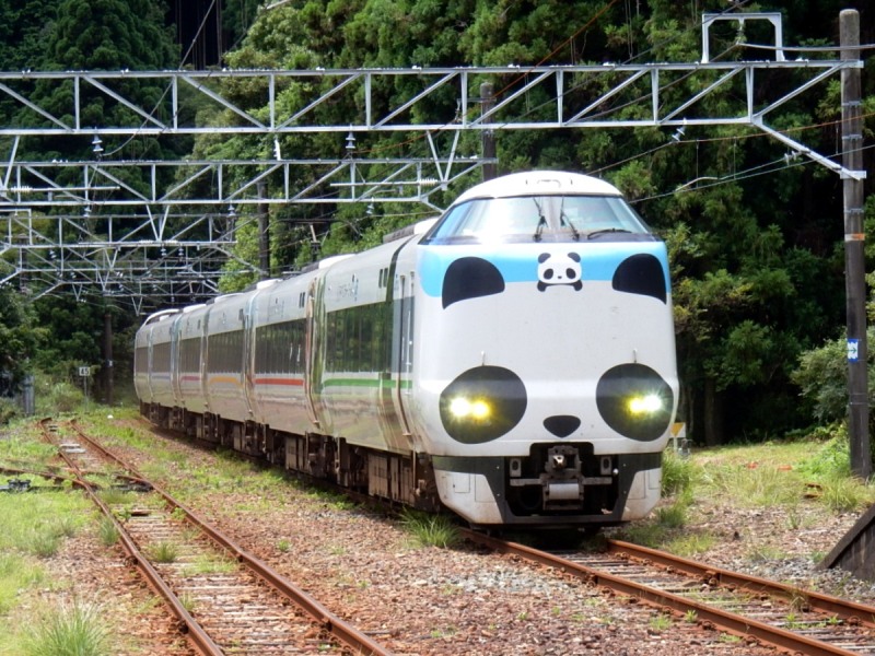 合間の撮り鉄は定番化した227系の普通列車と、パンダくろしお
