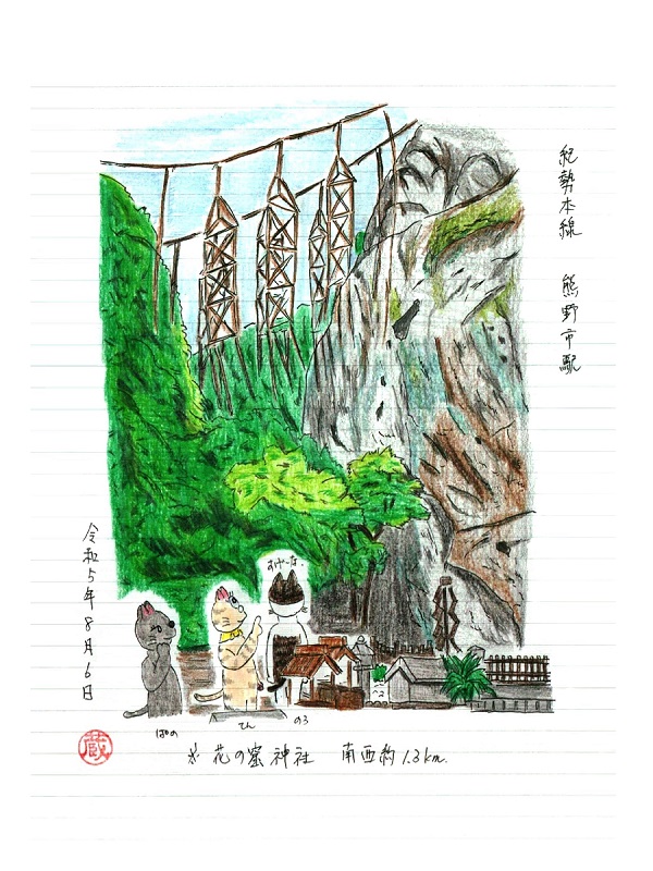 さて今回は、駅に着く前に寄り道してきた「花の窟神社」を描いて