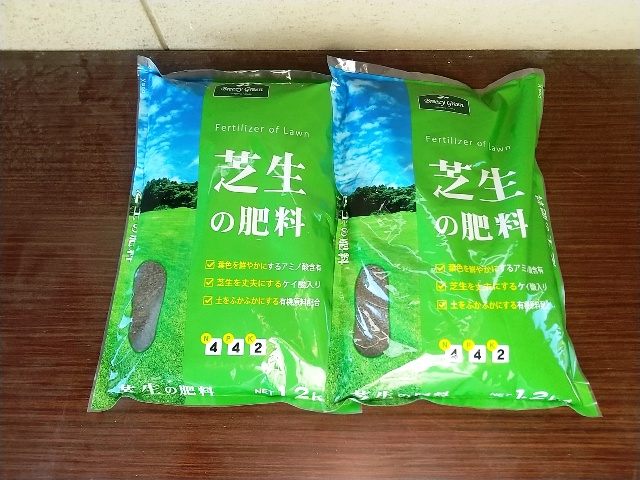やはりマダラな所があるので、肥料を買ってきて撒く事にしました。