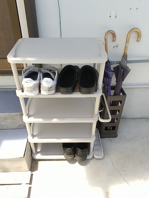 ついでの事に、勝手口にあるシューズトレイ(主に長男用)や庭の