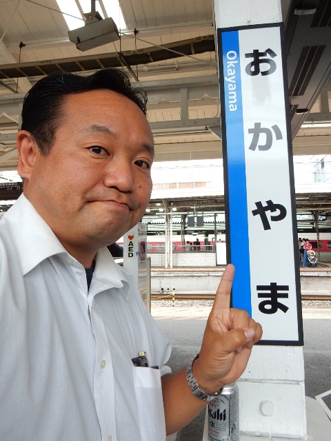 すっかり通い慣れた岡山駅から撮ってますが「四国まんなか…」に