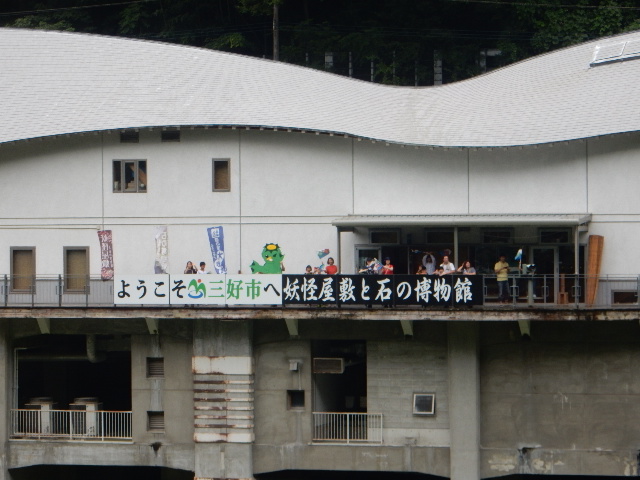 吉野川の対岸にある「道の駅」から、地元のカッパさんと観光客の