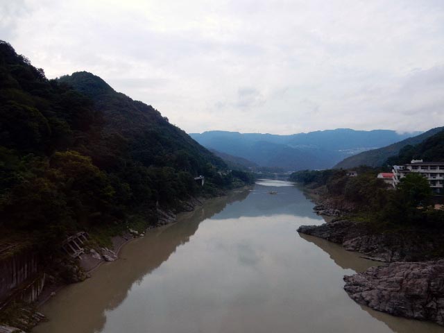 ココまで線路に寄り添う感じで流れていた吉野川は、阿波池田の手前