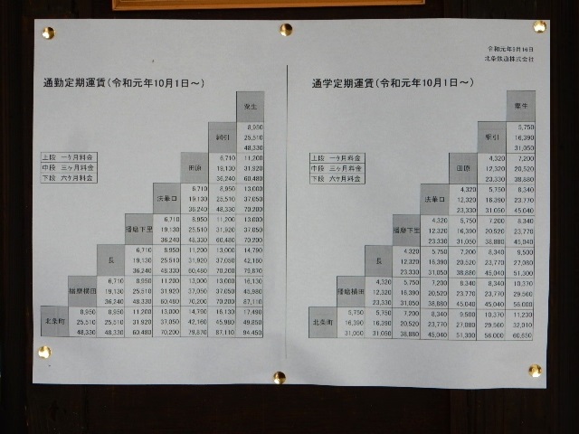 そろそろ新しい運賃表が掲示されておりました。…現行では最長距離