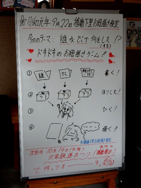 さてココで、先日…9月22日の播磨下里お絵描き教室の報告です。