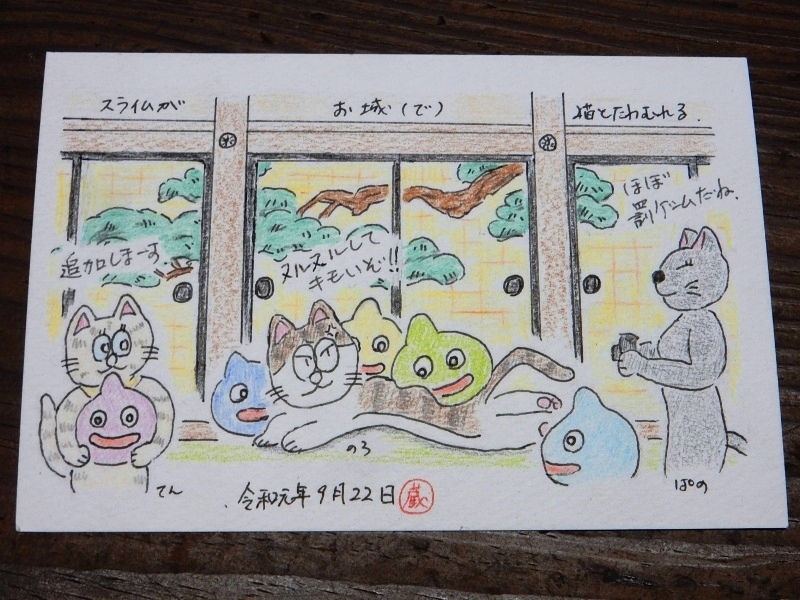 まずは「スライムが/お城で/猫とたわむれる」ですか。