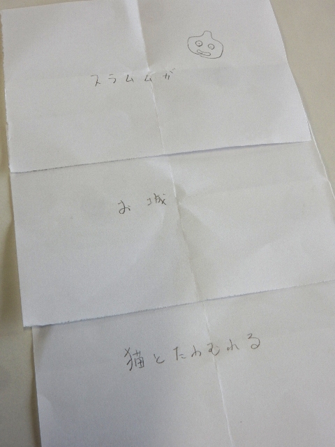 が揃いました。今回はくじを引いた時点で「誰が」「どこで」「何をした」