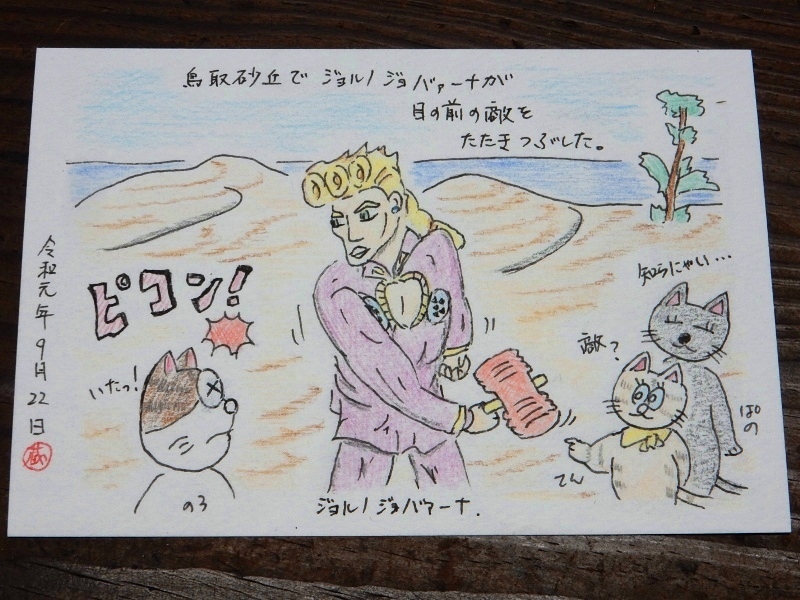 …続いてが「ジョルノジョバァーナが/鳥取砂丘で/目の前の敵を叩き