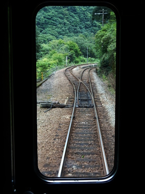 上り列車なので、坪尻を発車後に引き上げ線の方に入ります。