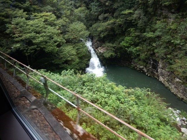 引き上げ線に入り切った所で、車窓の東側に滝が見えるんですよ。