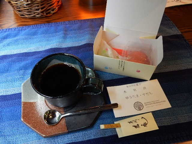 車内はお料理が終わって、食後のコーヒーとスイーツの時間です。