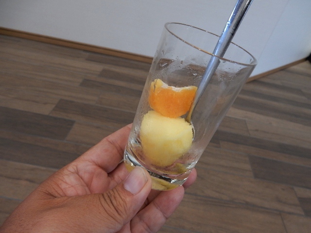上り便で頂いたのはミカンのシャーベットです。…恐らくデザートに