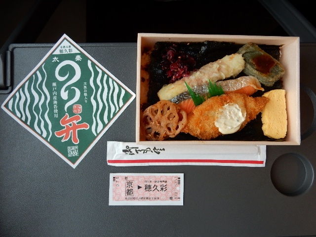 朝が早かったので朝食から駅弁です。「太秦のり弁」という、初めて