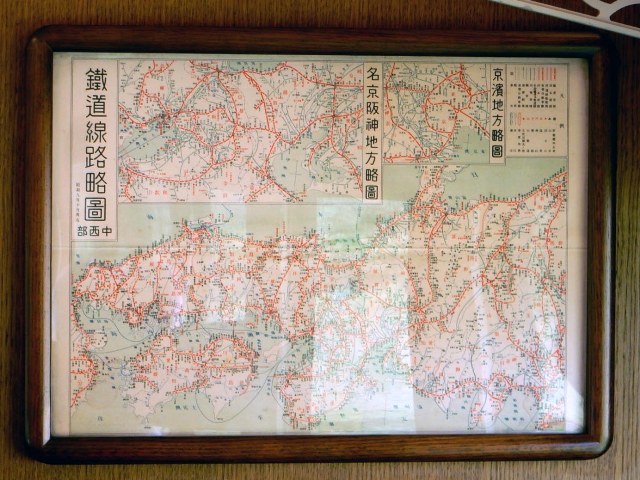 車内に貼られた鉄道地図は、よく見たら昭和9年の文字がありました。