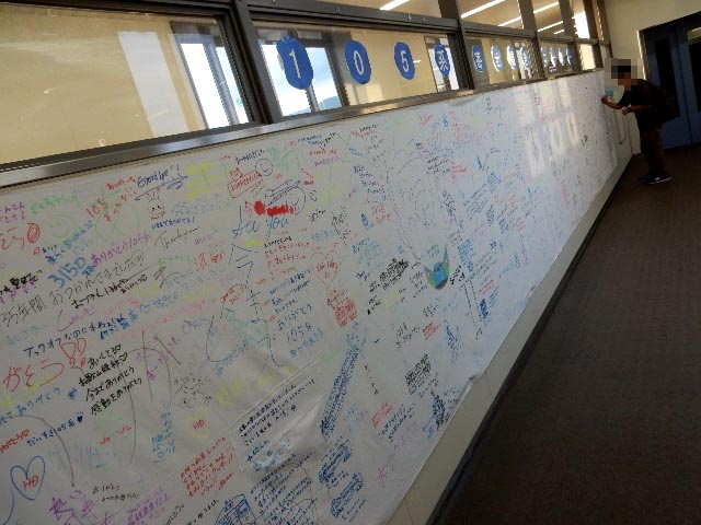 を告知するポスターと、大きな惜別の寄せ書きがありました。