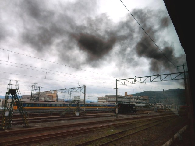さてSLやまぐち号ですが、汽笛一声…ようやく新山口駅を発車しました。