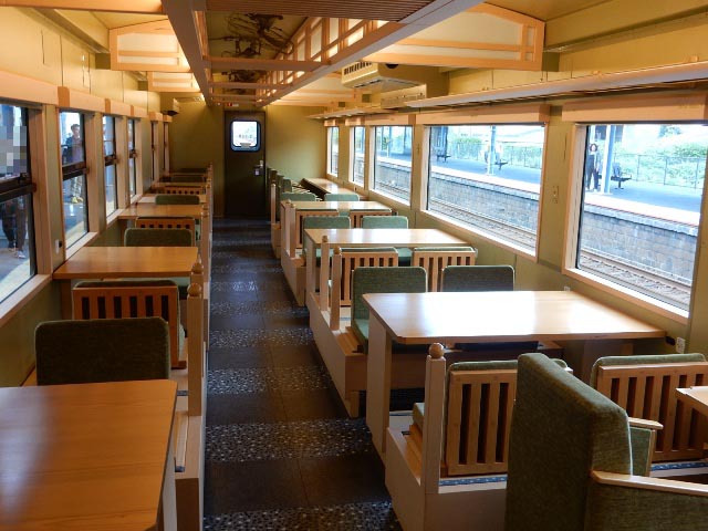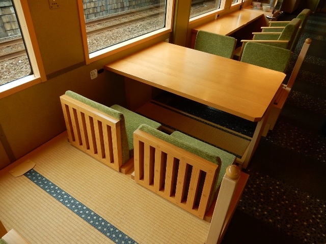 海側に4名掛けのテーブル席があり、山側が同様の2名席。