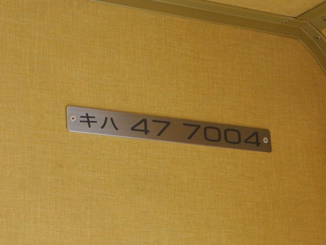 車両番号は「キハ47 7004」。…凝った内装ですが普通車です。
